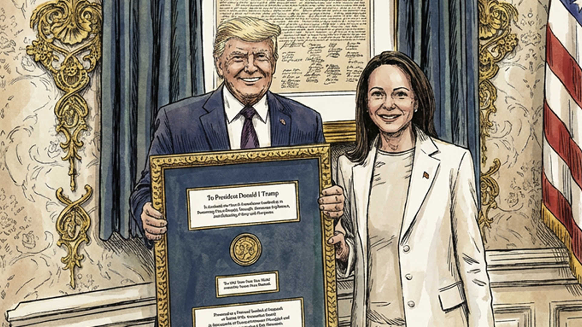 Trump obviamente agradeció el magnánimo gesto y reconoció a Machado como una mujer “maravillosa y valiente”, y la entrega de la medalla como un “gesto maravilloso de respeto mutuo”. Y como dijo María Corina al salir de la Casa Blanca con una sonrisa de oreja a oreja: “Contamos con Donald Trump para la libertad de Venezuela”.